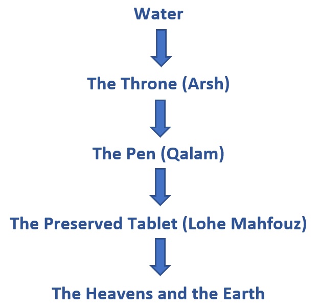 After the Lohe Mahfouz, Allah created the Heavens and the Earth and everything in it. We will cover this in more detail in the next article.